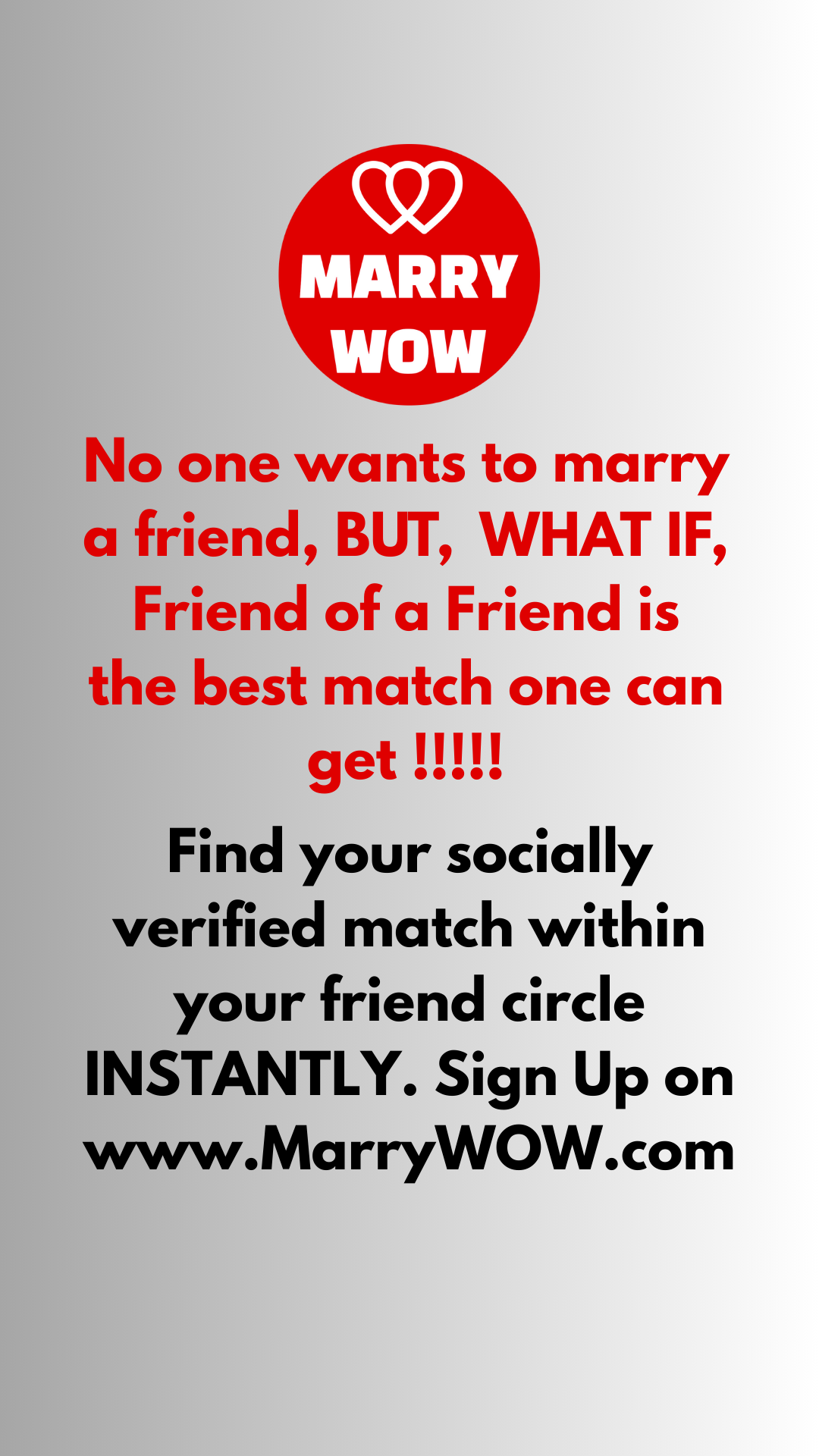 Indian Matrimony Matchmaking gets WOWSome with MarryWOW. Our pioneering technology ensures Instant Compatible Matchmaking powered by Friends, Family, Social Networking and Connections. Shaadi in India is now Simpler, Faster and Easier. Find your Jeevansathi with MarryWOW !!!
