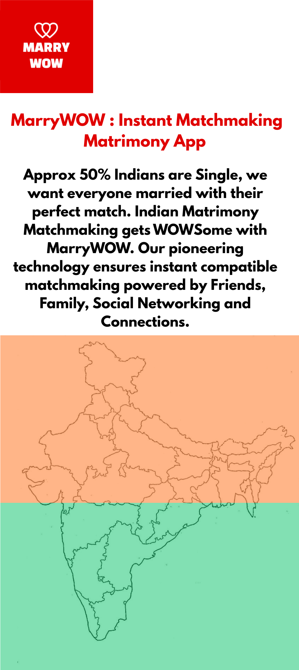 Approx. 50% Indians are SINGLE. MarryWOW - Instant Matchmaking Matrimony App wants everyone married with their perfect match.