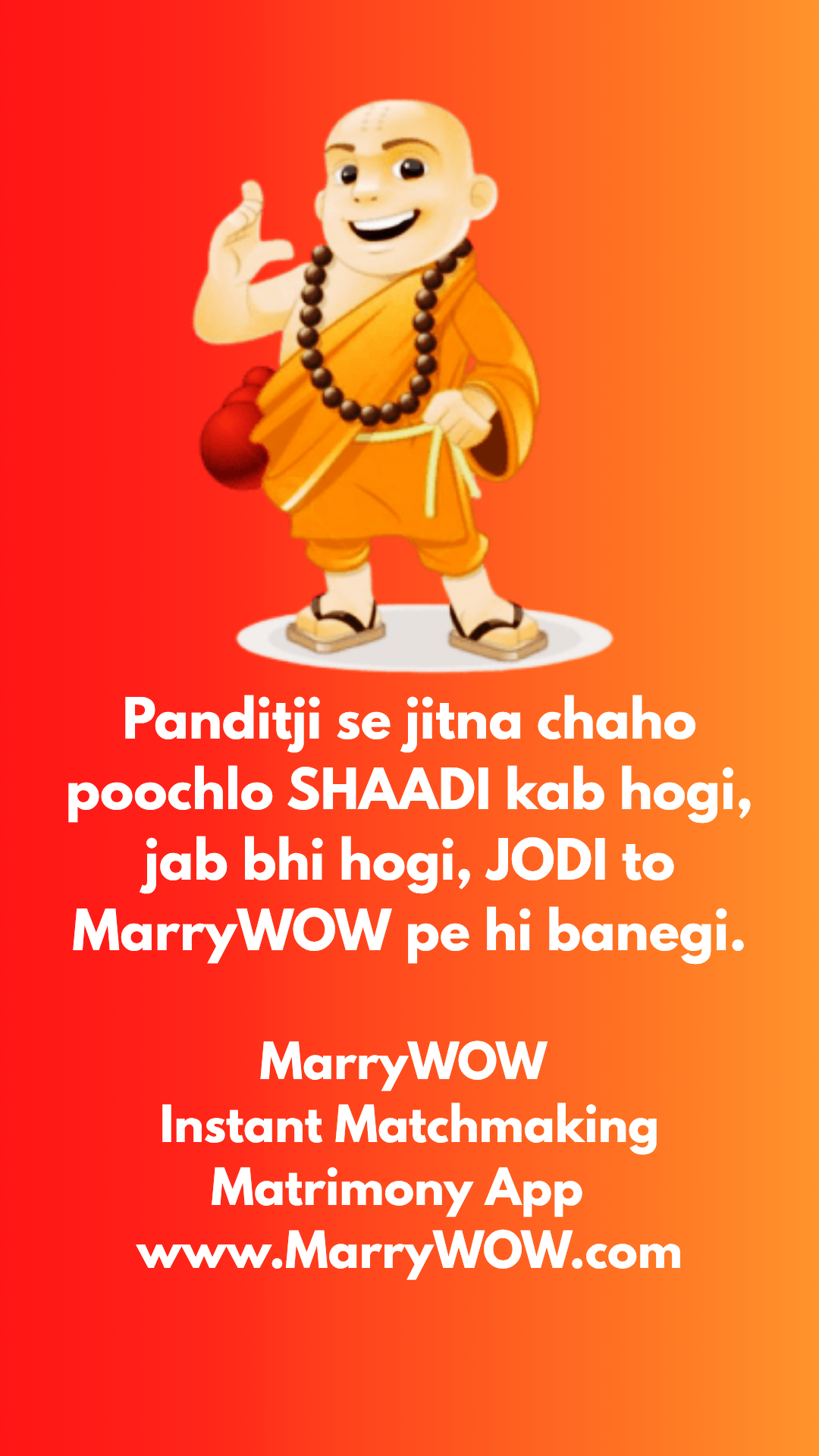MarryWOW Says : Panditji se jitna chaho poochlo SHAADI kab hogi, jab bhi hogi, JODI to MarryWOW pe hi banegi. Ask your astrologer about Kundali I...
