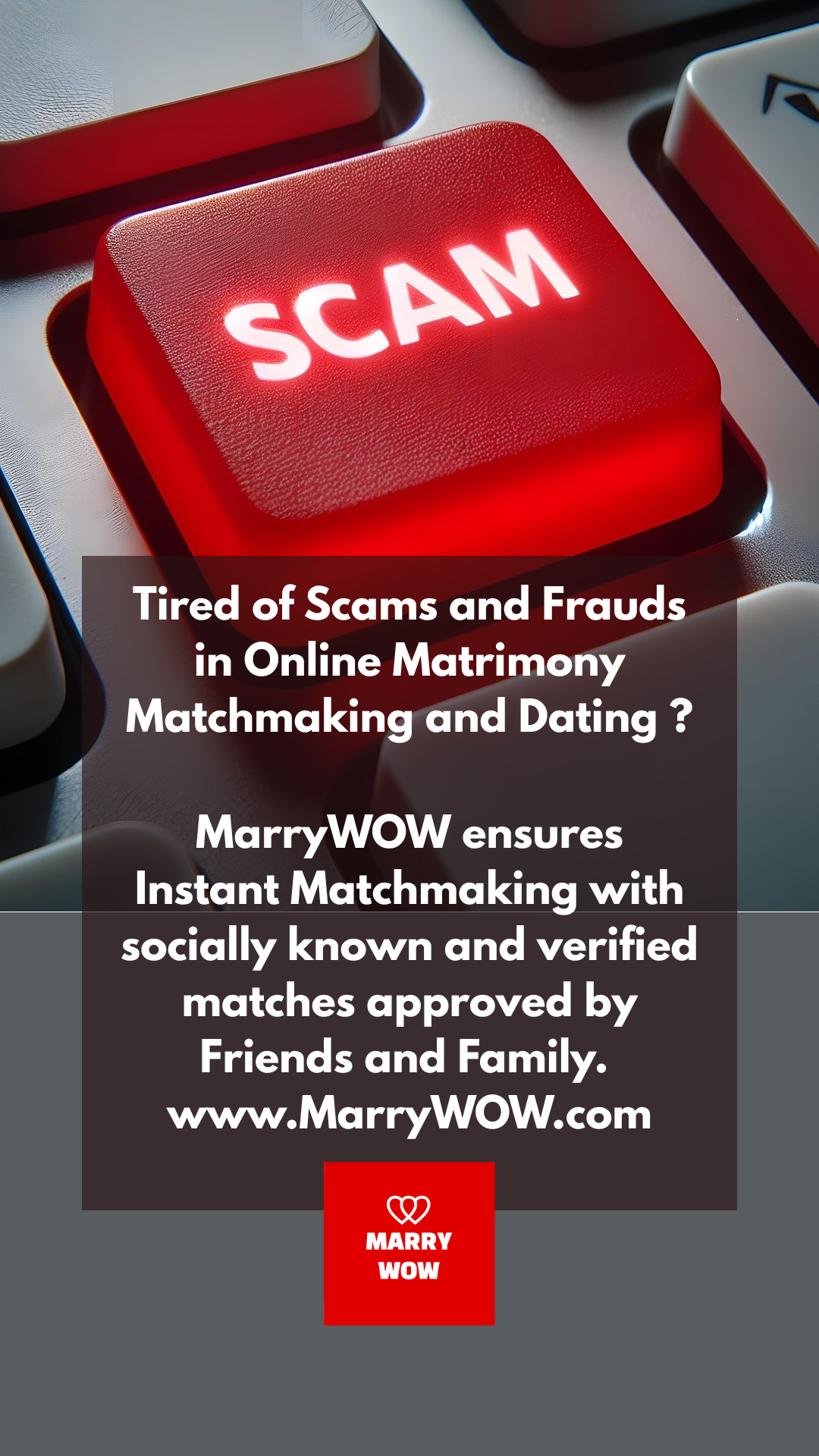 MarryWOW Says : Tired of Scams and Frauds in Online Matrimony Matchmaking and Dating ? MarryWOW ensures Instant Matchmaking with socially known...