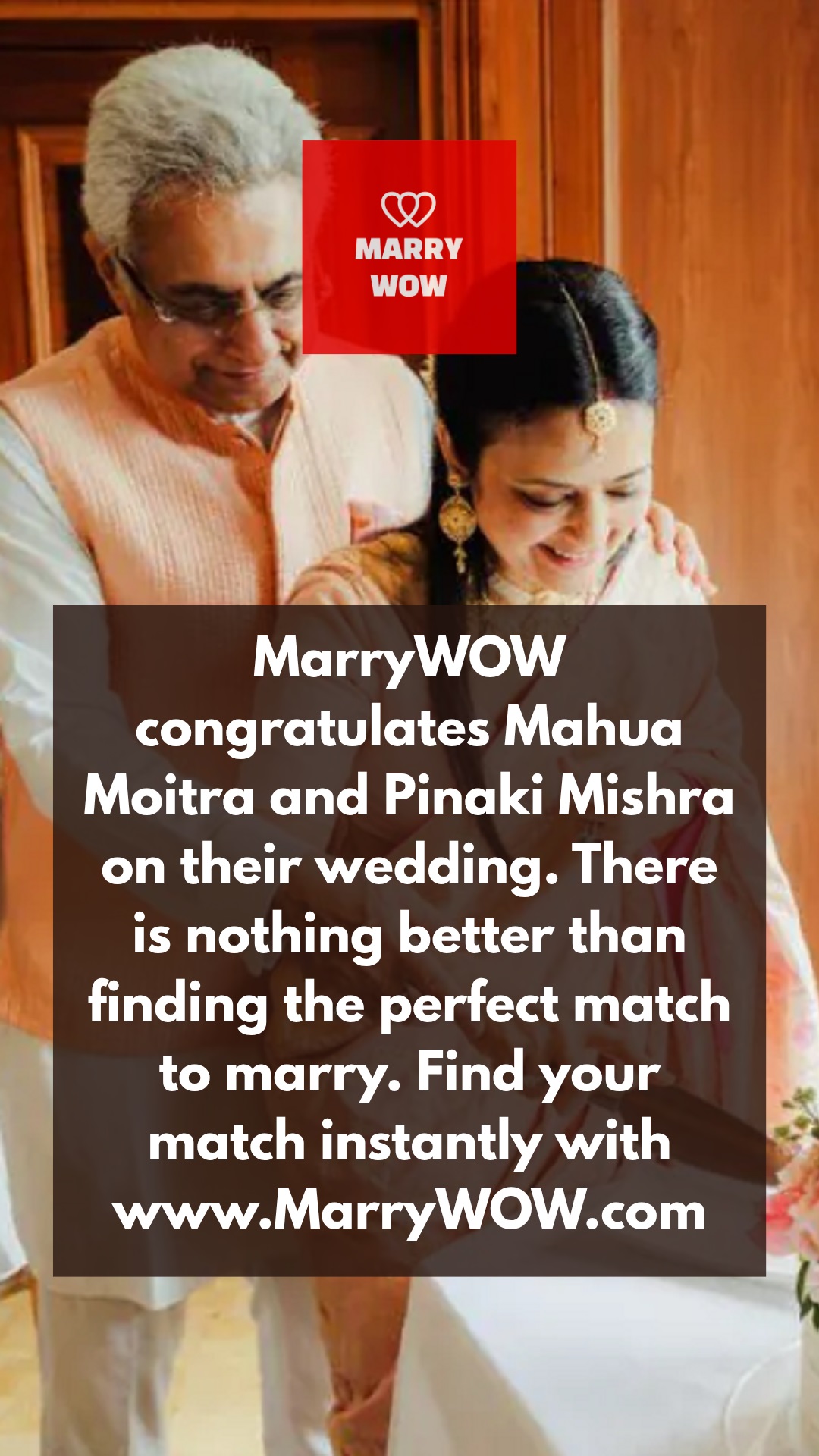 MarryWOW congratulates Mahua Moitra and Pinaki Mishra on their wedding. There is nothing better than finding the perfect match to marry.