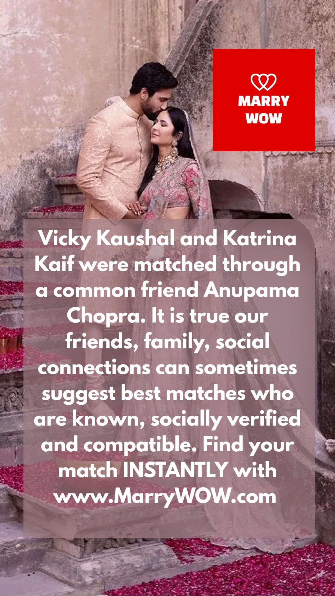MarryWOW : Vicky Kaushal and Katrina Kaif were matched through a common friend, Anupama Chopra. It is true our friends, family, social connection...